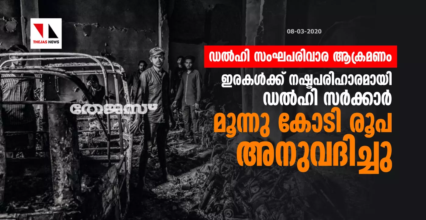 ഡല്ഹി സംഘപരിവാര ആക്രമണം: ഇരകള്ക്ക് നഷ്ടപരിഹാരമായി ഡല്ഹി സര്ക്കാര് മൂന്നു കോടി രൂപ അനുവദിച്ചു