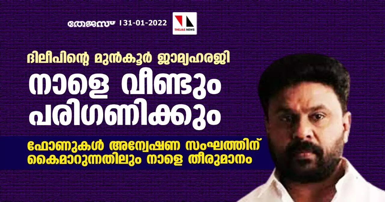 ദിലീപിന്റെ മുന്കൂര് ജാമ്യഹരജി നാളെ വീണ്ടും പരിഗണിക്കും; ഫോണുകള് അന്വേഷണ സംഘത്തിന് കൈമാറുന്നതിലും നാളെ തീരുമാനം