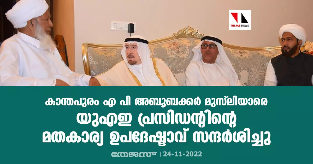 കാന്തപുരം എ പി അബൂബക്കർ മുസ്ലിയാരെ യു എ ഇ പ്രസിഡന്റിന്റെ മതകാര്യ ഉപദേഷ്ടാവ് സന്ദർശിച്ചു