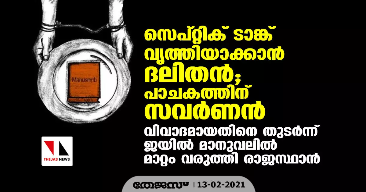 സെപ്റ്റിക് ടാങ്ക് വൃത്തിയാക്കാന് ദലിതന്, പാചകത്തിന് സവര്ണന്; വിവാദമായതിനെ തുടര്ന്ന് ജയില് മാനുവലില് മാറ്റം വരുത്തി രാജസ്ഥാന്