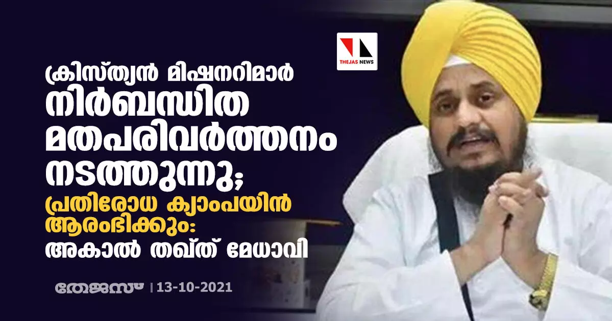 ക്രിസ്ത്യൻ മിഷനറിമാർ നിർബന്ധിത മതപരിവർത്തനം നടത്തുന്നു; പ്രതിരോധ ക്യാംപയിൻ ആരംഭിക്കും: അകാൽ തഖ്ത് മേധാവി