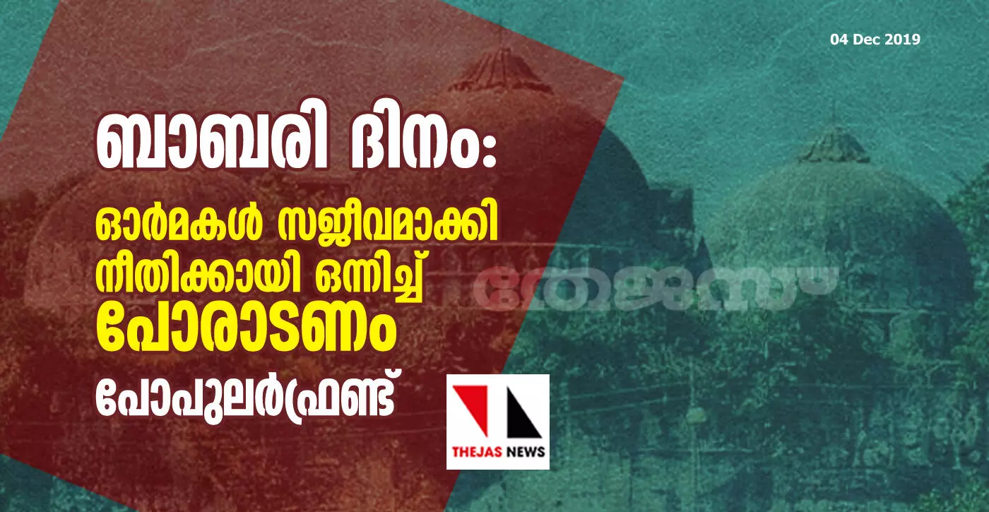ബാബരി ദിനം: നീതിക്കായി ഒന്നിച്ച് പോരാടണമെന്ന് പോപുലര്ഫ്രണ്ട്
