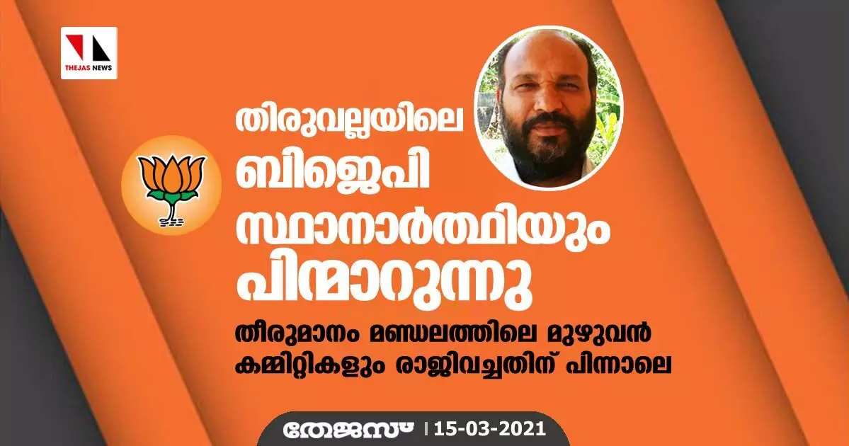 തിരുവല്ലയിലെ ബിജെപി സ്ഥാനാർത്ഥിയും പിന്മാറുന്നു; തീരുമാനം മണ്ഡലത്തിലെ മുഴുവൻ കമ്മിറ്റികളും രാജിവച്ചതിന് പിന്നാലെ