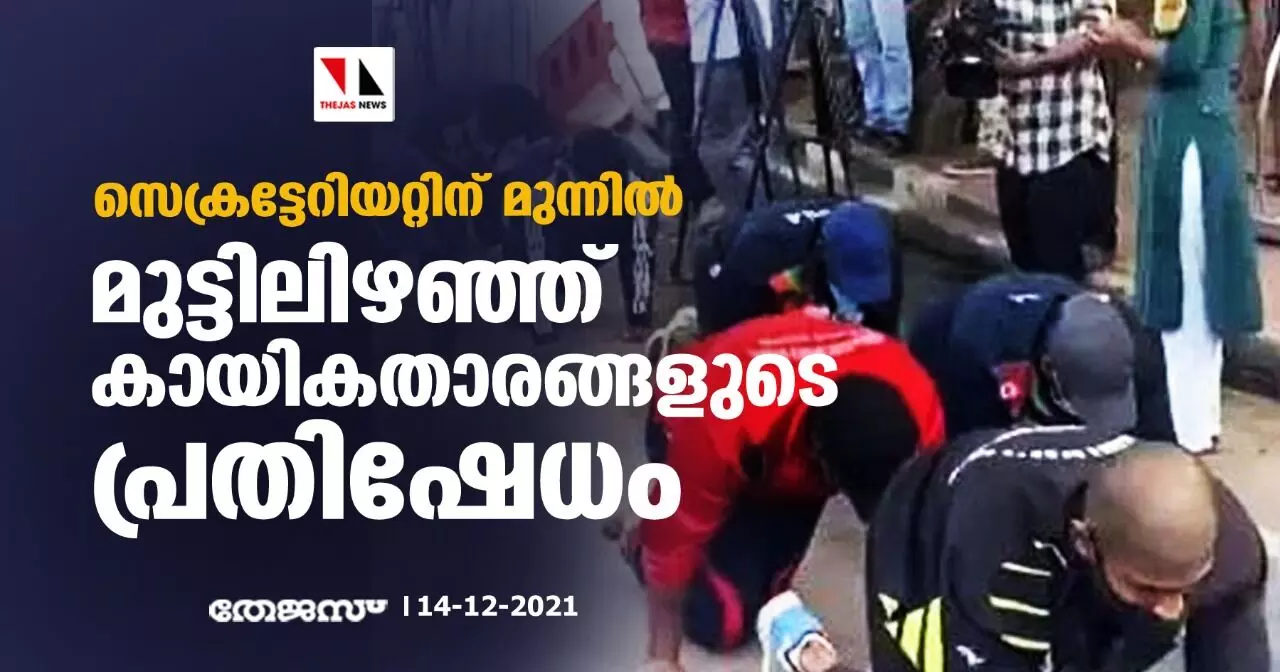 സെക്രട്ടേറിയറ്റിന് മുന്നില് മുട്ടിലിഴഞ്ഞ് കായികതാരങ്ങളുടെ പ്രതിഷേധം