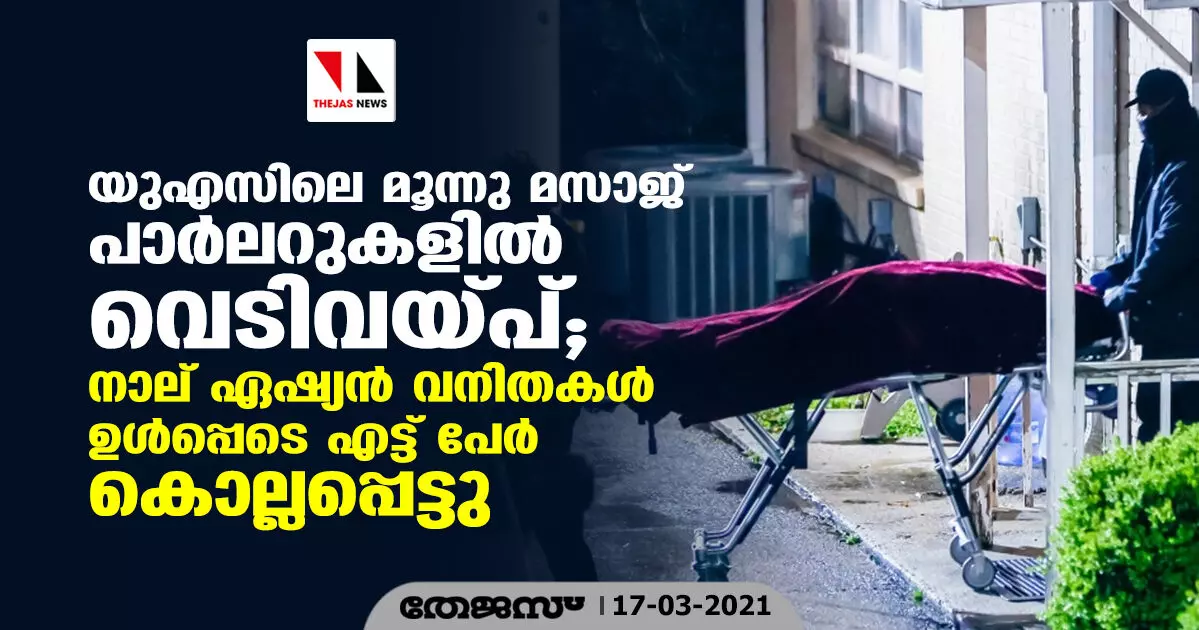 യുഎസിലെ മൂന്നു മസാജ് പാര്ലറുകളില് വെടിവെപ്പ്; നാല് ഏഷ്യന് വനിതകള് ഉള്പ്പെടെ എട്ട് പേര് കൊല്ലപ്പെട്ടു