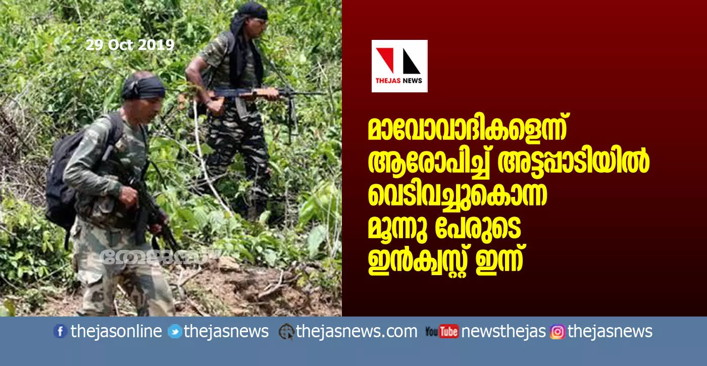 മാവോവാദികളെന്ന് ആരോപിച്ച് അട്ടപ്പാടിയില് വെടിവച്ചുകൊന്ന മൂന്നു പേരുടെ ഇന്ക്വസ്റ്റ് ഇന്ന്