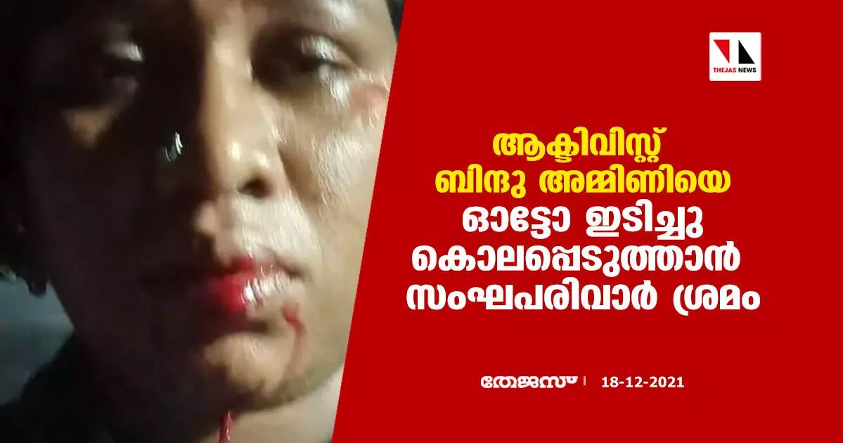 ആക്ടിവിസ്റ്റ് ബിന്ദു അമ്മിണിയെ ഓട്ടോ ഇടിച്ചു കൊലപ്പെടുത്താൻ സംഘപരിവാർ ശ്രമം