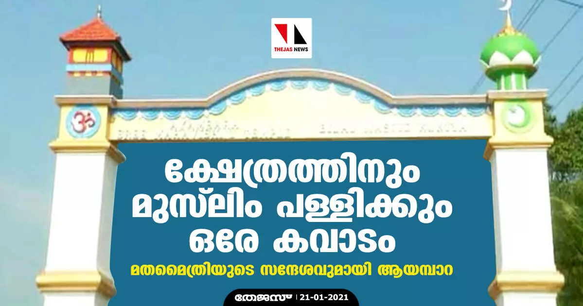 ക്ഷേത്രത്തിനും മുസ്ലിം പള്ളിക്കും ഒരേ കവാടം; മതമൈത്രിയുടെ സന്ദേശവുമായി ആയമ്പാറ