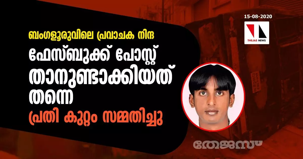 ബംഗളൂരു പ്രവാചക നിന്ദ: ഫേസ്ബുക്ക് പോസ്റ്റ് താനുണ്ടാക്കിയത് തന്നെ; പ്രതി കുറ്റം സമ്മതിച്ചു