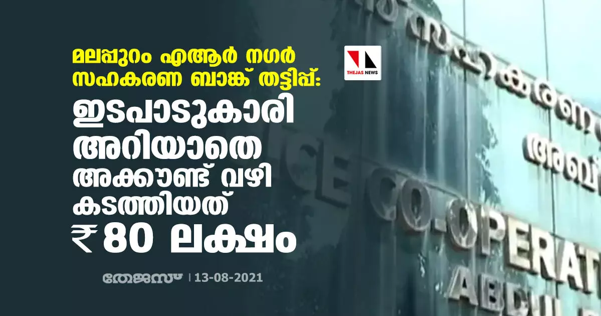 മലപ്പുറം എ ആർ നഗർ സഹകരണ ബാങ്ക് തട്ടിപ്പ്, ഇടപാടുകാരി അറിയാതെ അക്കൗണ്ട് വഴി കടത്തിയത് 80 ലക്ഷം രൂപ