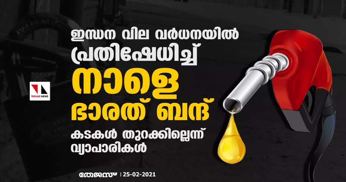 ഇന്ധന വില വര്ധനയില് പ്രതിഷേധിച്ച് നാളെ ഭാരത് ബന്ദ്; കടകള് തുറക്കില്ലെന്ന് വ്യാപാരികള്