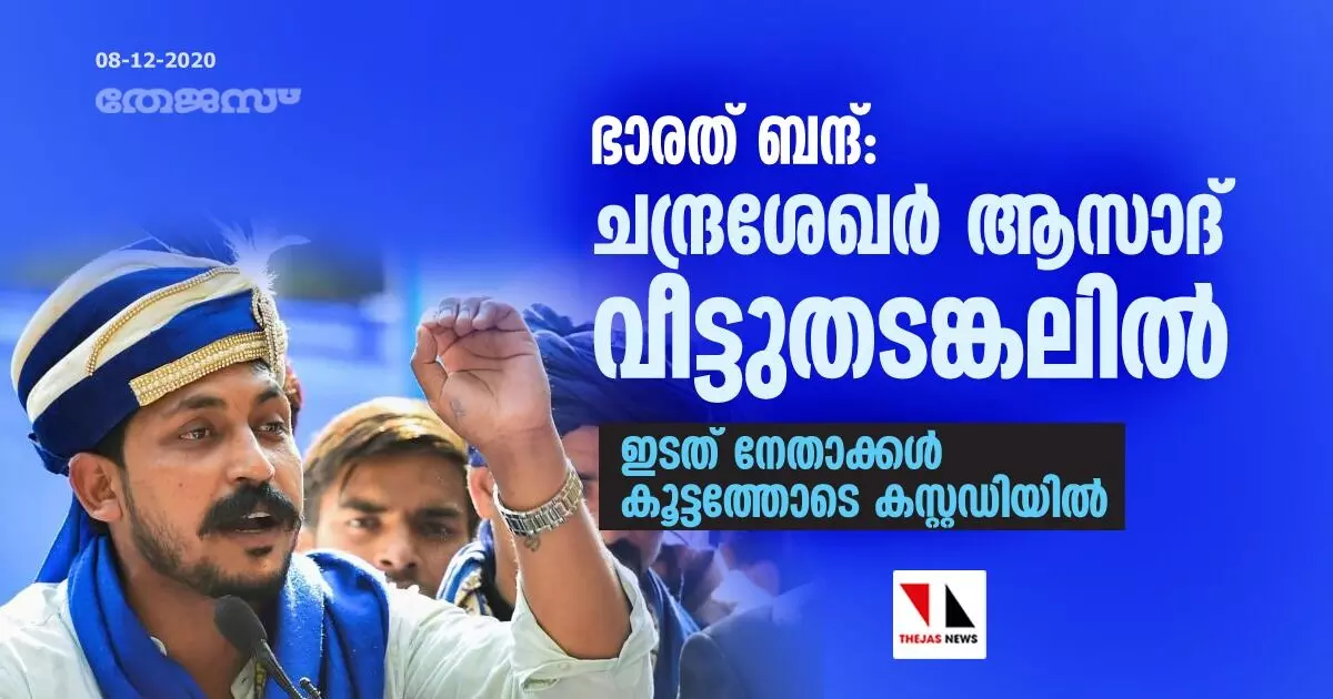 ഭാരത് ബന്ദ്: ചന്ദ്രശേഖര് ആസാദ് വീട്ടുതടങ്കലില്; ഇടത് നേതാക്കള് കൂട്ടത്തോടെ കസ്റ്റഡിയില്