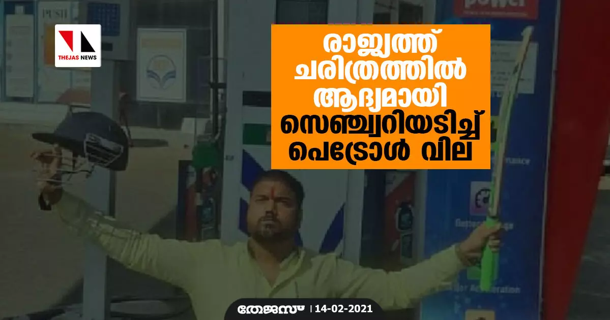 രാജ്യത്ത് ചരിത്രത്തില് ആദ്യമായി സെഞ്ച്വറിയടിച്ച് പെട്രോള് വില