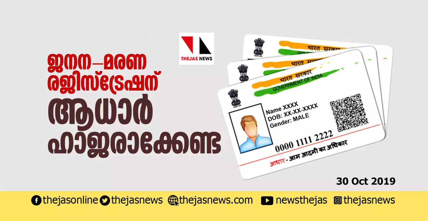 ജനന-മരണ രജിസ്ട്രേഷന് ഇനി ആധാര് ഹാജരാക്കേണ്ടെന്ന് നിര്ദേശം
