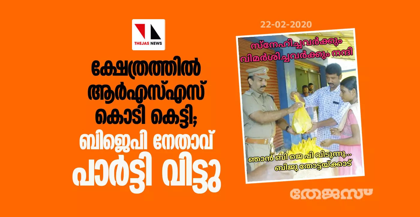 ക്ഷേത്രത്തില് ആര്എസ്എസ് കൊടി കെട്ടി; ബിജെപി നേതാവ് പാര്ട്ടി വിട്ടു