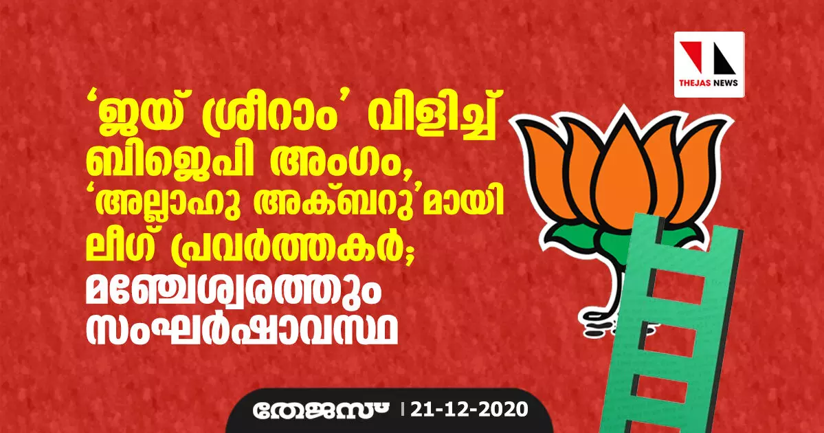 'ജയ് ശ്രീറാം' വിളിച്ച് ബിജെപി അംഗം, 'അല്ലാഹു അക്ബറു'മായി ലീഗ് പ്രവര്ത്തകര്; മഞ്ചേശ്വരത്തും സംഘര്ഷാവസ്ഥ