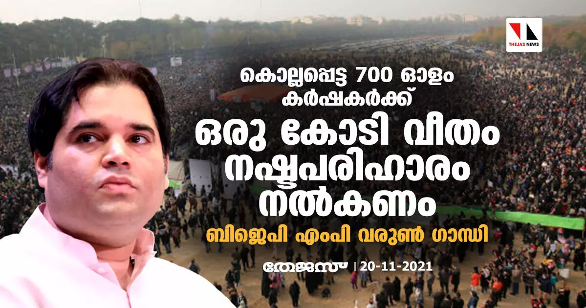 കൊല്ലപ്പെട്ട 700 ഓളം കര്ഷകര്ക്ക് ഒരു കോടി വീതം നഷ്ടപരിഹാരം നല്കണം: ബിജെപി എംപി വരുണ് ഗാന്ധി