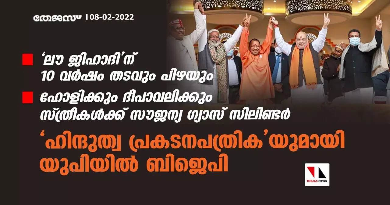 ലൗ ജിഹാദിന് 10 വര്ഷം തടവും പിഴയും, ഹോളിക്കും ദീപാവലിക്കും സ്ത്രീകള്ക്ക് സൗജന്യ ഗ്യാസ് സിലിണ്ടര്;'ഹിന്ദുത്വ പ്രകടനപത്രിക'യുമായി യുപിയില് ബിജെപി