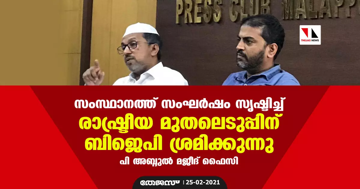 സംസ്ഥാനത്ത് സംഘര്ഷം സൃഷ്ടിച്ച് രാഷ്ട്രീയ മുതലെടുപ്പിന് ബിജെപി ശ്രമിക്കുന്നു: പി അബ്ദുല് മജീദ് ഫൈസി