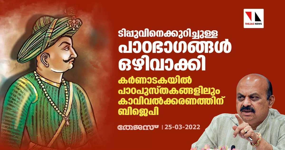 ടിപ്പുവിനെക്കുറിച്ചുള്ള പാഠഭാഗങ്ങള് ഒഴിവാക്കി; കര്ണാടകയില് പാഠപുസ്തകങ്ങളിലും കാവിവല്ക്കരണത്തിന് ബിജെപി