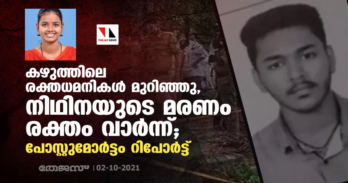 കഴുത്തിലെ രക്തധമനികള് മുറിഞ്ഞു, നിഥിനയുടെ മരണം രക്തം വാര്ന്ന്; പോസ്റ്റുമോര്ട്ടം റിപോര്ട്ട്