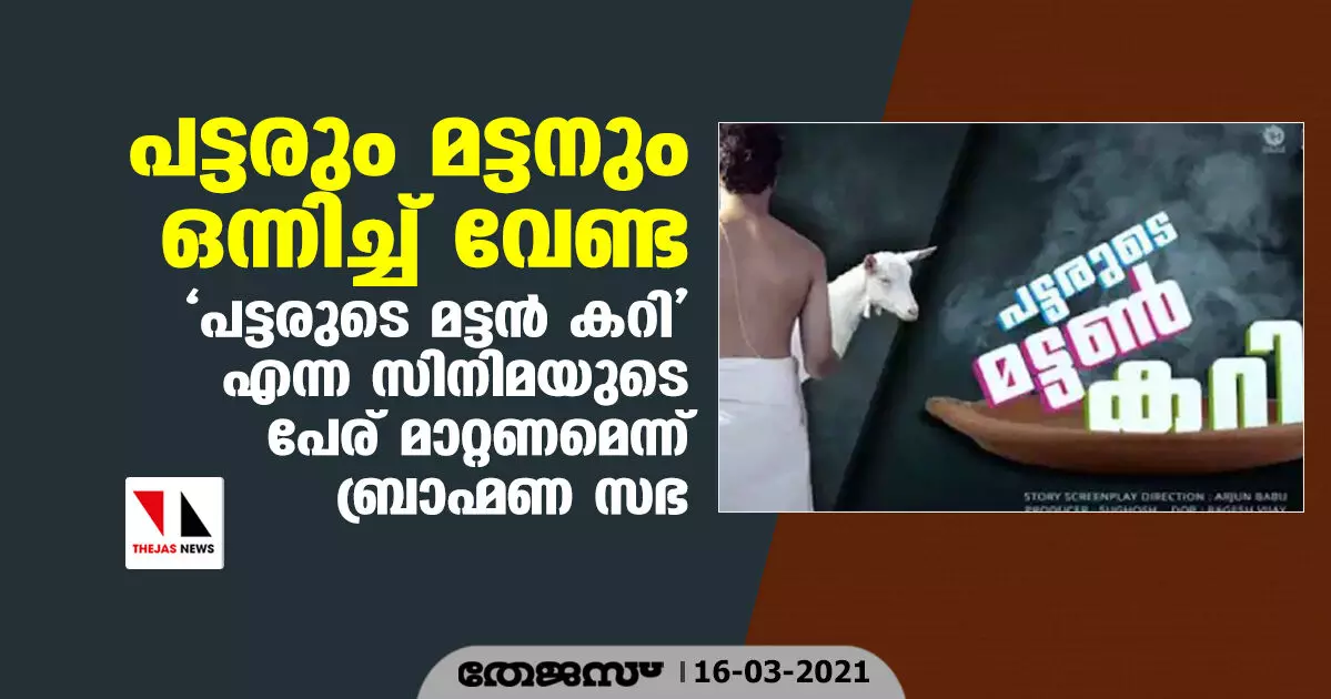 'പട്ടരുടെ മട്ടന് കറി' എന്ന സിനിമയുടെ പേര് മാറ്റണമെന്ന് ബ്രാഹ്മണ സഭ