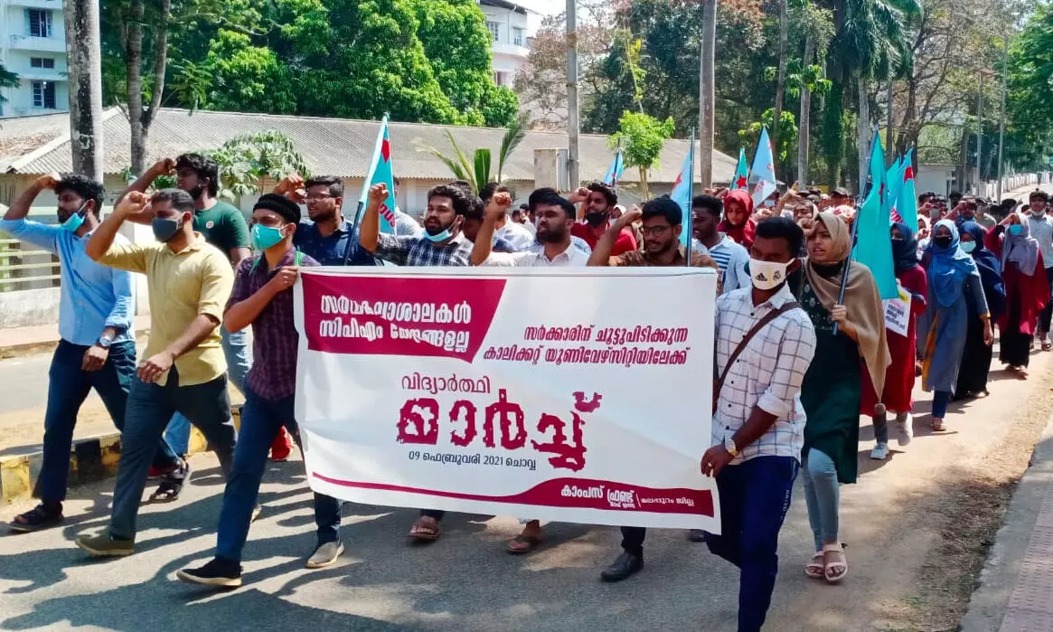 Campus front march to Calicut University against backdoor appointments
