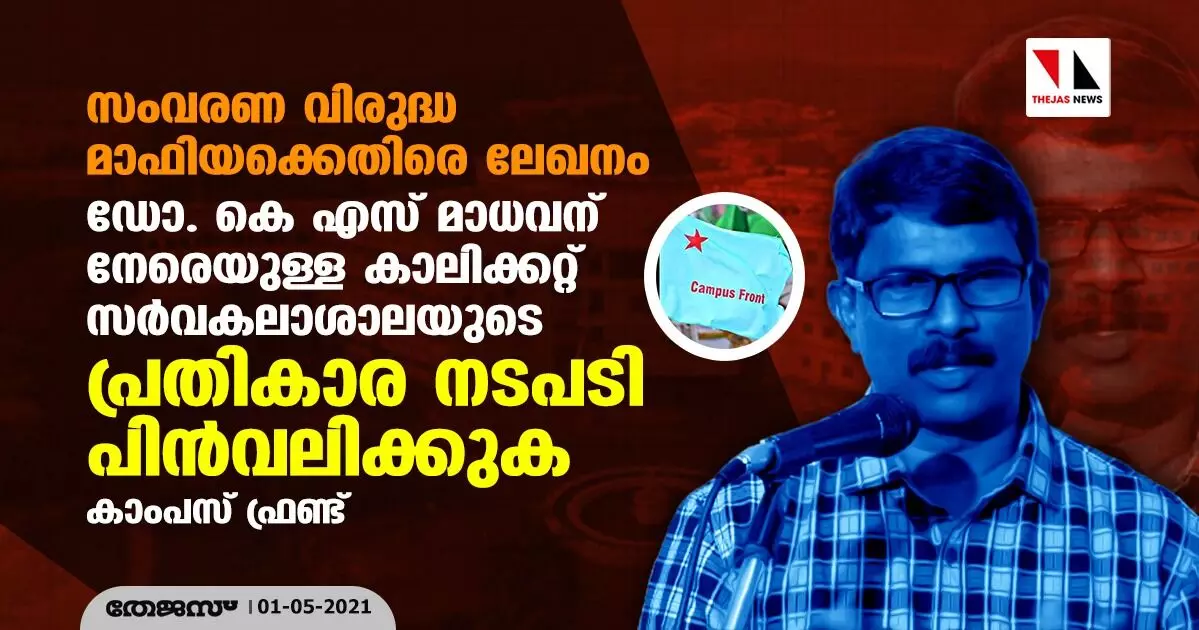 സംവരണ വിരുദ്ധ മാഫിയക്കെതിരെ ലേഖനം: ഡോ. കെ എസ് മാധവന് നേരെയുള്ള കാലിക്കറ്റ് സർവകലാശാലയുടെ പ്രതികാര നടപടി പിൻവലിക്കുക - കാംപസ് ഫ്രണ്ട്