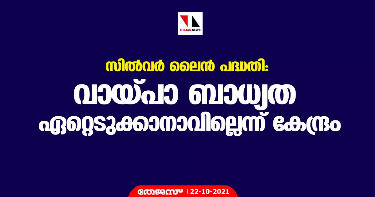 സില്വര് ലൈന് പദ്ധതി: വായ്പാ ബാധ്യത ഏറ്റെടുക്കാനാവില്ലെന്ന് കേന്ദ്രം