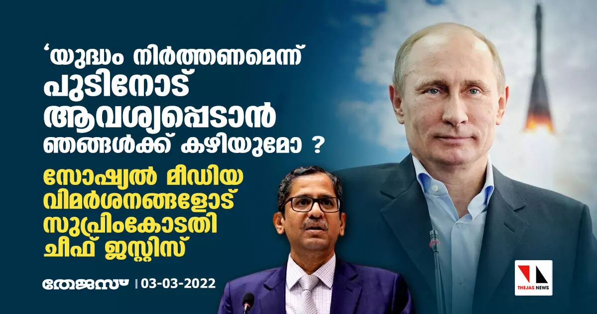 'യുദ്ധം നിര്ത്തണമെന്ന് പുടിനോട് ആവശ്യപ്പെടാന് ഞങ്ങള്ക്ക് കഴിയുമോ ? സോഷ്യല് മീഡിയ വിമര്ശനങ്ങളോട് സുപ്രിംകോടതി ചീഫ് ജസ്റ്റിസ്