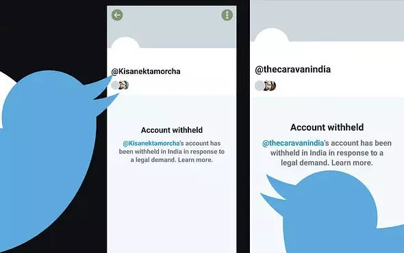 ന്യൂഡല്ഹി: കര്ഷക പ്രക്ഷോഭത്തെ പിന്തുണച്ചതിനും മറ്റും കാരവന് ഉള്പ്പെടെയുള്ള മാധ്യമങ്ങളുടെയും കര്ഷക സംഘടനകള് ഉള്പ്പെടെയുള്ളവയുടെയും അക്കൗണ്ട് തടഞ്ഞുവച്ച നടപടി പ്രതിഷേധത്തെ തുടര്ന്ന് ട്വിറ്റര് പിന്വലിച്ചു. 'നിയമപരമായ ആവശ്യങ്ങള്'ക്കെന്നു പറഞ്ഞാണ് 250ഓളം അക്കൗണ്ടുകള് ട്വിറ്റര് തടഞ്ഞുവച്ചത്. ഇത് വ്യാപക പ്രതിഷേധത്തിനു കാരണമാക്കിയതോടെ ആറു മണിക്കൂറുകള്ക്കു ശേഷം പലതും പുനസ്ഥാപിച്ചു. ആഭ്യന്തര മന്ത്രാലയത്തിന്റെ അഭ്യര്ത്ഥനയുടെ അടിസ്ഥാനത്തിലാണ് ട്വിറ്റര് അക്കൗണ്ടുകള് തടഞ്ഞത്. #ModiPlanningFarmerGenocide എന്ന ഹാഷ്ടാഗ് ഉപയോഗിച്ച് വ്യാജവും ഭയപ്പെടുത്തുന്നതും പ്രകോപനപരവുമായ ട്വീറ്റുകള് ചെയ്തെന്ന് ആരോപിച്ചാണ് 250 ഓളം ട്വീറ്റുകള് / ട്വിറ്റര് അക്കൗണ്ടുകള് തടയാന് ട്വിറ്ററിനോട് നിര്ദേശം നല്കിയത്. കിസാന് ഏകതാ മോര്ച്ചയുടെയും ഭാരതീയ കിസാന് യൂനിയന്ഏക്തയുടെയും(ഉഗ്രഹാന്) ഔദ്യോഗിക അക്കൗണ്ടുകള് തടഞ്ഞിരുന്നു.