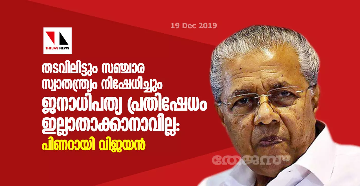 തടവിലിട്ടും സഞ്ചാര സ്വാതന്ത്ര്യം നിഷേധിച്ചും ജനാധിപത്യപ്രതിഷേധം ഇല്ലാതാക്കാനാവില്ല: പിണറായി വിജയന്
