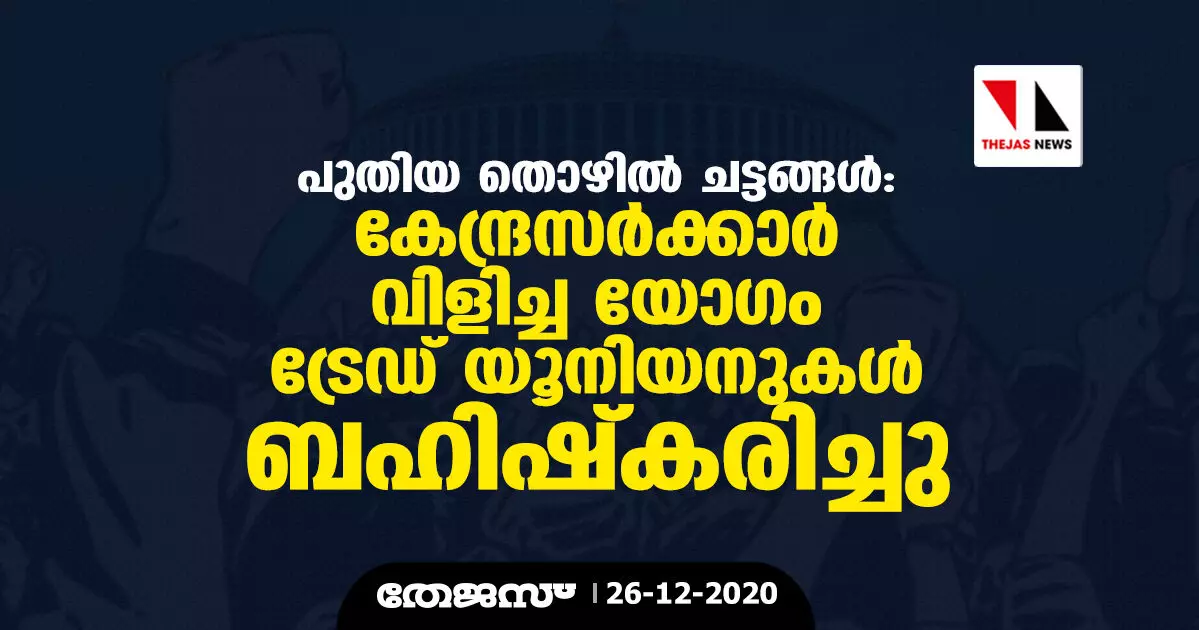 പുതിയ തൊഴിൽ ചട്ടങ്ങൾ: കേന്ദ്രസർക്കാർ വിളിച്ച യോഗം ട്രേഡ് യൂനിയനുകൾ ബഹിഷ്കരിച്ചു