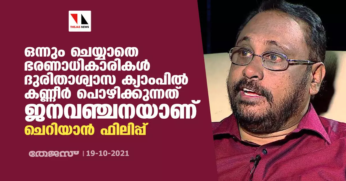 ഭരണാധികാരികള് ദുരന്തനിവാരണത്തിന് ഒന്നും ചെയ്യാതെ ദുരിതാശ്വാസ ക്യാംപില് കണ്ണീര് പൊഴിക്കുന്നത് ജനവഞ്ചനയാണ്: ചെറിയാൻ ഫിലിപ്പ്