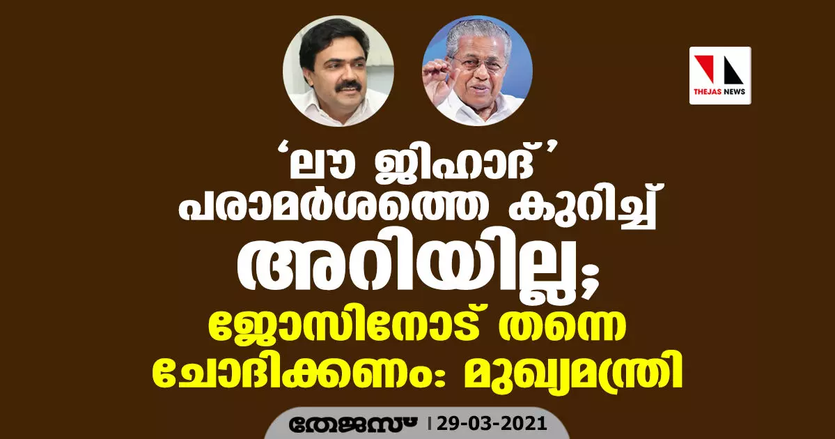 'ലൗ ജിഹാദ്' പരാമര്ശത്തെ കുറിച്ച് അറിയില്ല; ജോസിനോട് തന്നെ ചോദിക്കണം: മുഖ്യമന്ത്രി