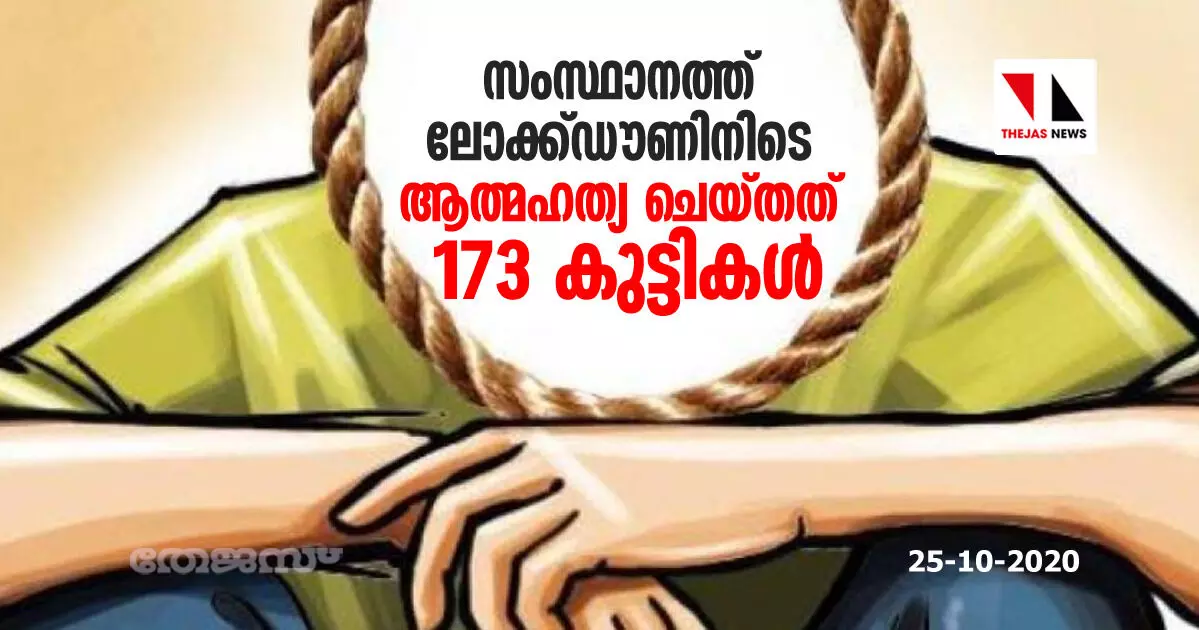തിരുവനന്തപുരം: സംസ്ഥാനത്ത് ലോക്ഡൗണിനിടെ ആത്മഹത്യ ചെയ്തത് 173 കുട്ടികള്. ആത്മഹത്യ ചെയ്ത കുട്ടികളില് ഭൂരിഭാഗവും 15- മുതല് 18 വയസ് വരെയുള്ള പ്രായ പരിധിയില് പെട്ടവരാണ്. പാലക്കാട്, തിരുവനന്തപുരം റൂറല്, മലപ്പുറം, വയനാട്, ആലപ്പുഴ എന്നിവിടങ്ങളിലാണ് കൂടുതല് ആത്മഹത്യകള് നടന്നത്. ശ്രീലേഖ ഐപിഎസ് അധ്യക്ഷയായ അഞ്ചംഗ സമിതിയാണ് റിപോര്ട്ട് തയ്യാറാക്കിയത്.