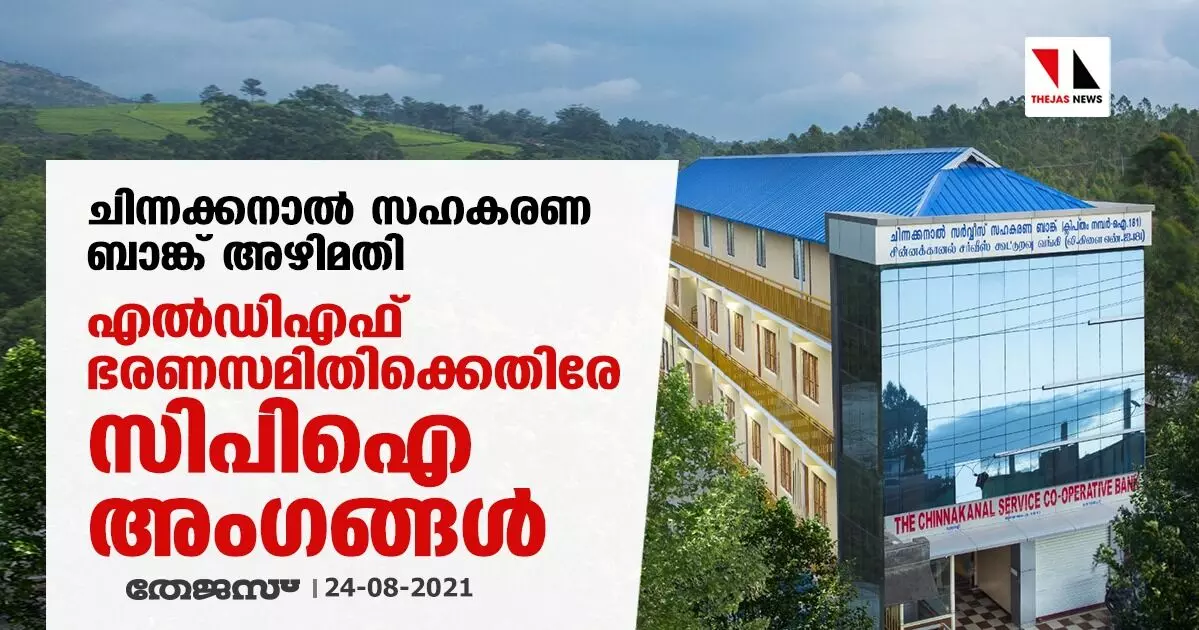 ചിന്നക്കനാല് സഹകരണ ബാങ്ക് അഴിമതി; എല്ഡിഎഫ് ഭരണസമിതിക്കെതിരേ സിപിഐ അംഗങ്ങള്