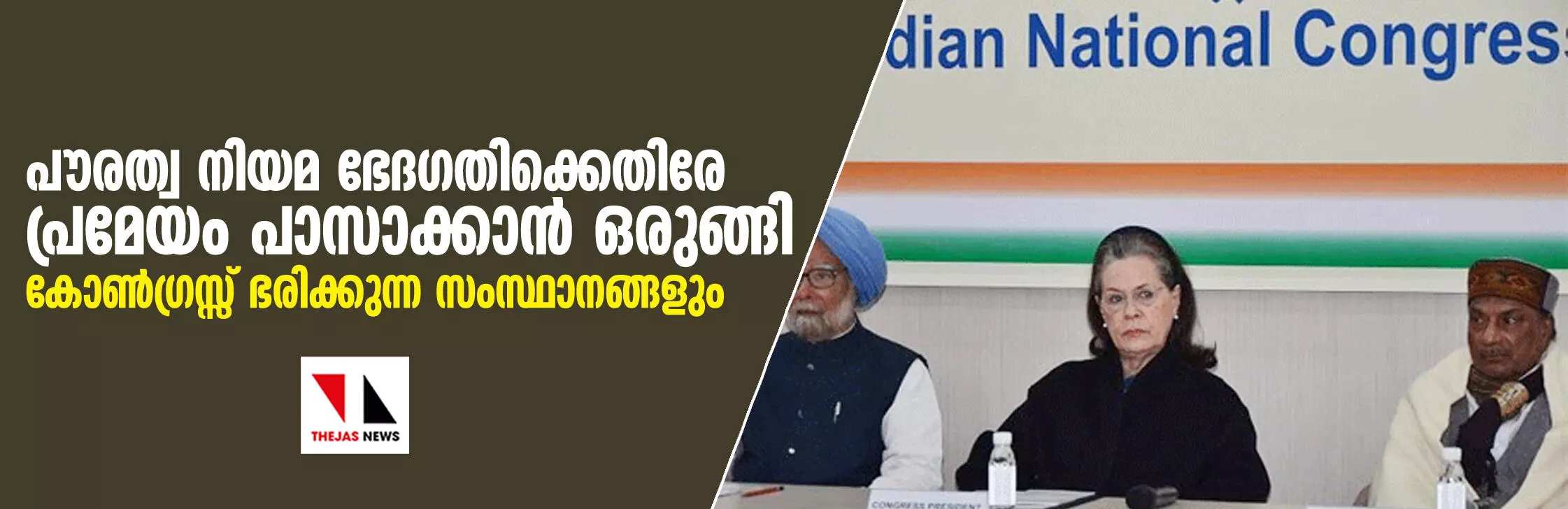 പൗരത്വ നിയമ ഭേദഗതിക്കെതിരേ പ്രമേയം പാസാക്കാന് ഒരുങ്ങി കോണ്ഗ്രസ്സ് ഭരിക്കുന്ന സംസ്ഥാനങ്ങളും