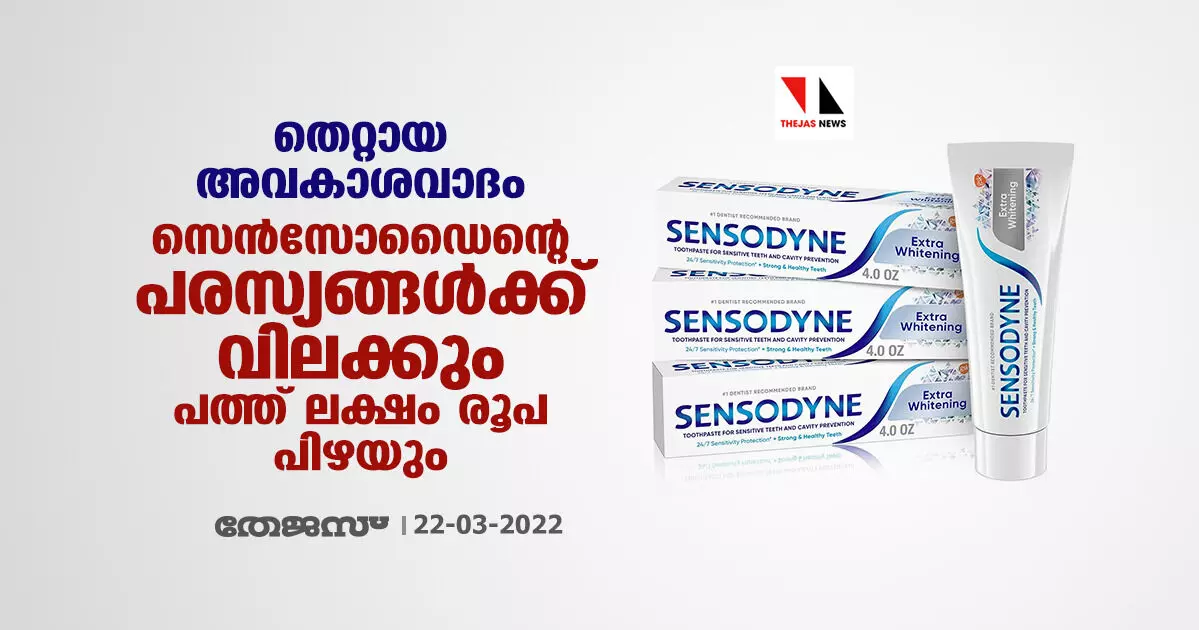 തെറ്റായ അവകാശവാദം; സെൻസോഡൈന്റെ പരസ്യങ്ങൾക്ക് വിലക്കും പത്ത് ലക്ഷം രൂപ പിഴയും