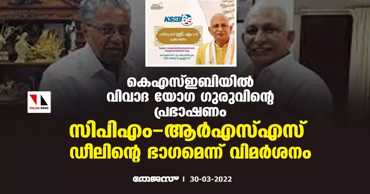 കെഎസ്ഇബിയില് വിവാദ യോഗ ഗുരുവിന്റെ പ്രഭാഷണം; സിപിഎം- ആര്എസ്എസ് ഡീലിന്റെ ഭാഗമെന്ന് വിമര്ശനം