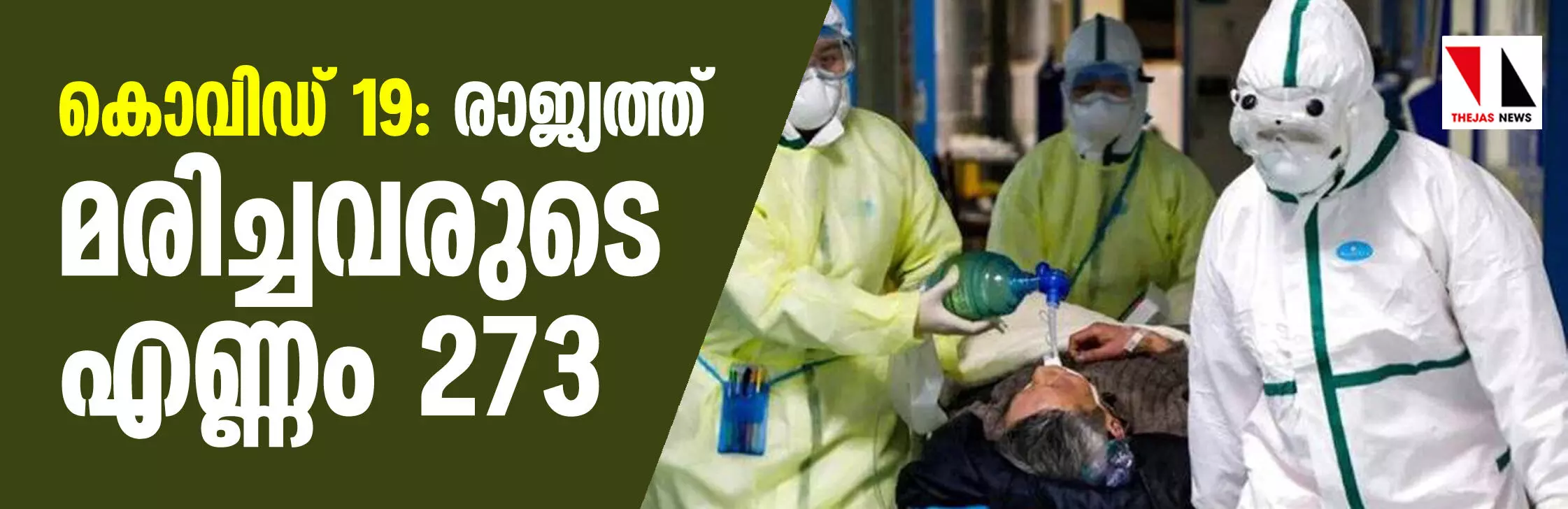 കൊവിഡ് 19: രാജ്യത്ത് മരിച്ചവരുടെ എണ്ണം 273; കഴിഞ്ഞ 24 മണിക്കൂറിനിടെ രോഗം ബാധിച്ചത് 909 പേര്ക്ക്