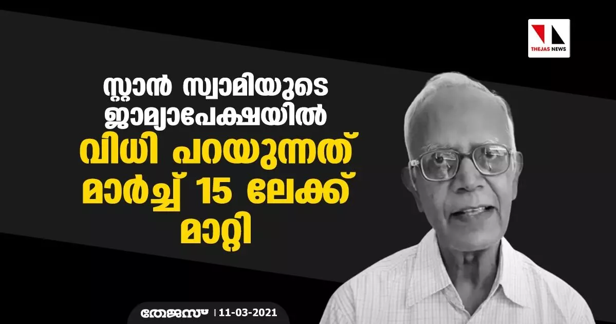 സ്റ്റാൻ സ്വാമിയുടെ ജാമ്യാപേക്ഷയിൽ വിധി പറയുന്നത് മാർച്ച് 15 ലേക്ക് മാറ്റി