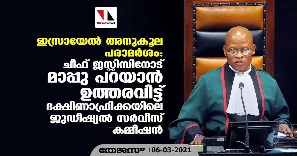 ജൂണില് ഇസ്രായേല് അനുകൂല പരാമര്ശത്തിലൂടെ രാജ്യത്തിന്റെ നീതിന്യായ വ്യവസ്ഥ ലംഘിച്ച കേസില് കുറ്റക്കാരനാണെന്ന് കണ്ടെത്തിയതിനെത്തുടര്ന്നാണ് ദക്ഷിണാഫ്രിക്കന് ചീഫ് ജസ്റ്റിസ് മൊഗൊങ് മൊഗൊങ്ങ് മാപ്പ് പറയണമെന്ന് രാജ്യത്തെ ജുഡീഷ്യറിയെ നിയന്ത്രിക്കുന്ന ദക്ഷിണാഫ്രിക്കയിലെ ജുഡീഷ്യല് സര്വീസ് കമ്മീഷന് (ജെഎസ്സി) നിര്ദേശിച്ചത്.