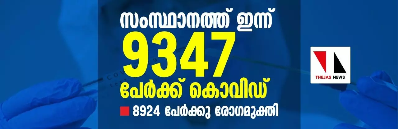 സംസ്ഥാനത്ത് ഇന്ന് 9347 പേര്ക്ക് കൊവിഡ്; 8924 പേര്ക്കു രോഗമുക്തി