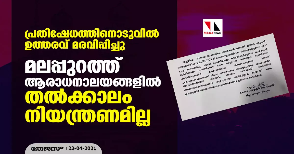 പ്രതിഷേധത്തിനൊടുവില് ഉത്തരവ് മരവിപ്പിച്ചു; മലപ്പുറത്ത് ആരാധനാലയങ്ങളില് തല്ക്കാലം നിയന്ത്രണമില്ല