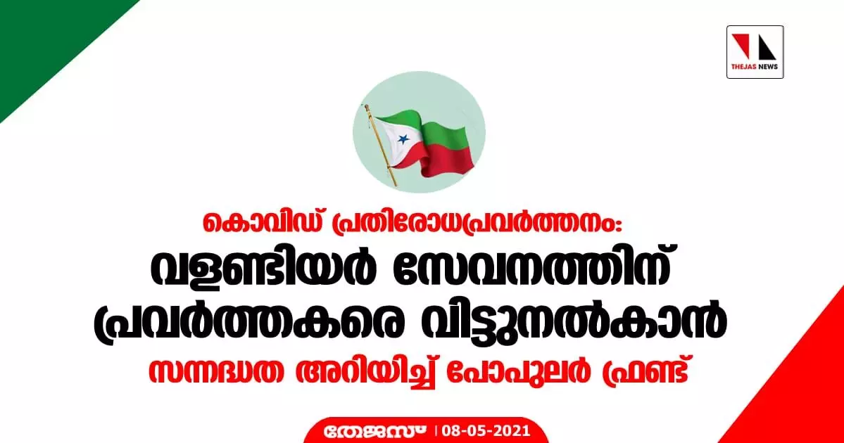 കൊവിഡ് പ്രതിരോധപ്രവര്ത്തനം: വളണ്ടിയര് സേവനത്തിന് പ്രവര്ത്തകരെ വിട്ടുനല്കാന് സന്നദ്ധത അറിയിച്ച് പോപുലര് ഫ്രണ്ട്