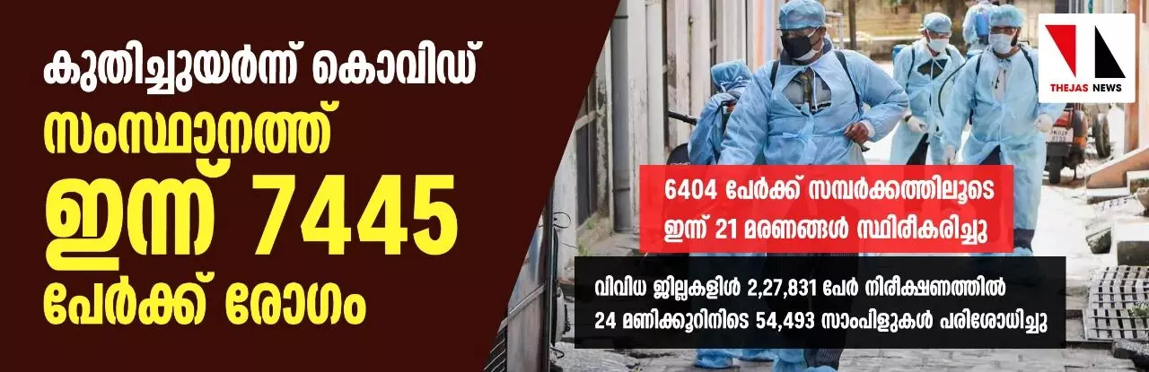 കുതിച്ചുയര്ന്ന് കൊവിഡ്; സംസ്ഥാനത്ത് ഇന്ന് 7445 പേര്ക്ക് രോഗം
