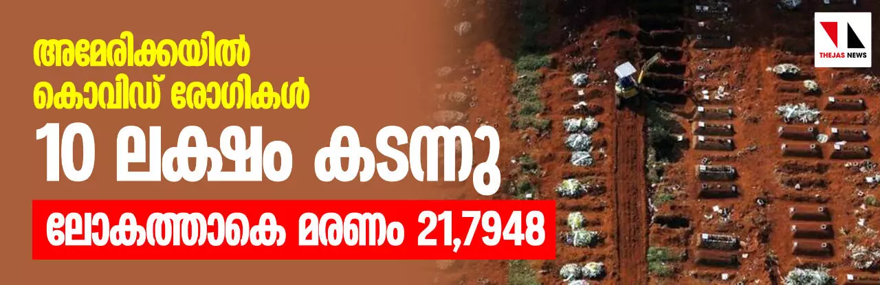 അമേരിക്കയില് കൊവിഡ് രോഗികള് 10 ലക്ഷം കടന്നു: ലോകത്താകെ മരണം 217948