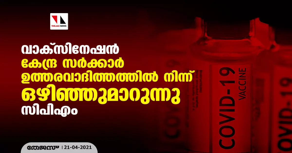വാക്സിനേഷൻ: കേന്ദ്ര സർക്കാർ ഉത്തരവാദിത്തത്തിൽ നിന്ന് ഒഴിഞ്ഞുമാറുന്നു: സിപിഎം