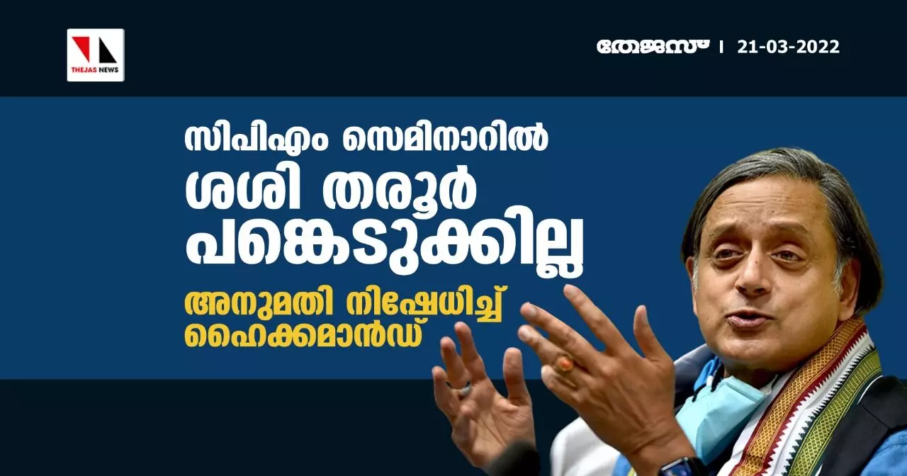 സിപിഎം സെമിനാറിൽ ശശി തരൂർ പങ്കെടുക്കില്ല; അനുമതി നിഷേധിച്ച് ഹൈക്കമാൻഡ്